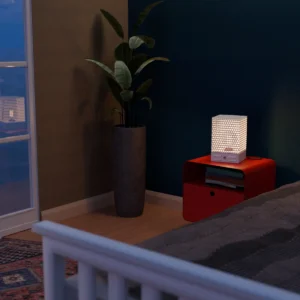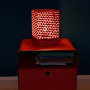 Komodin, çalışma masası, yan sehpa veya kitaplık üzerinde kullanılabilir.