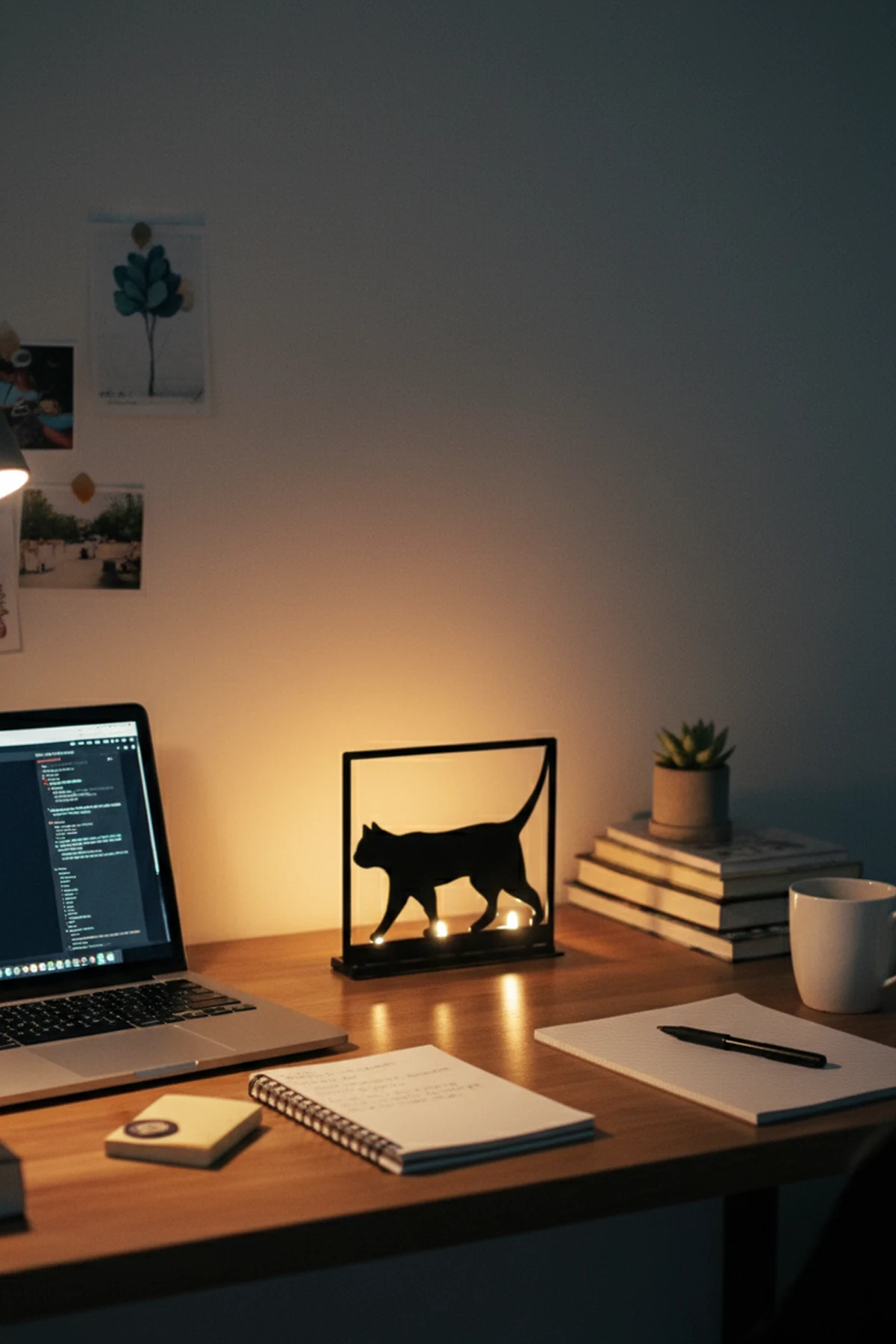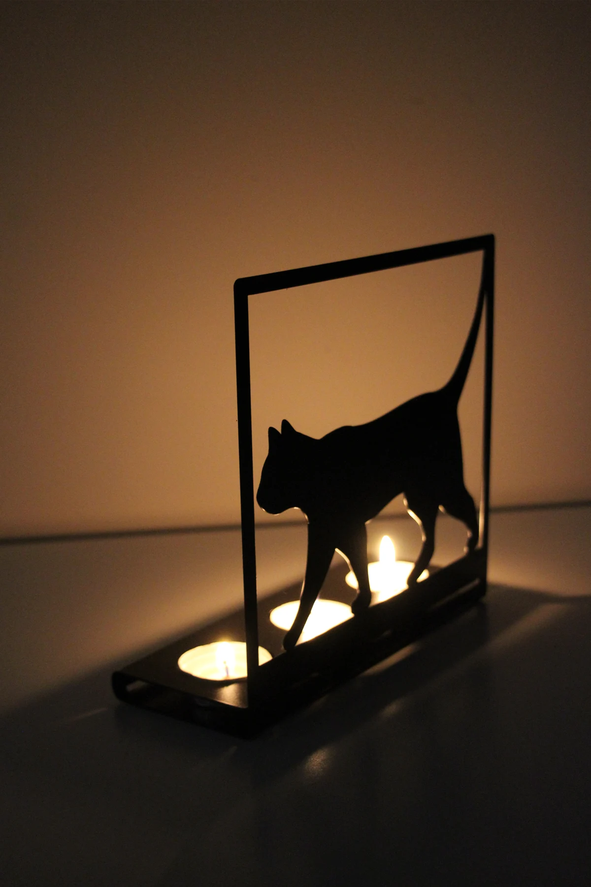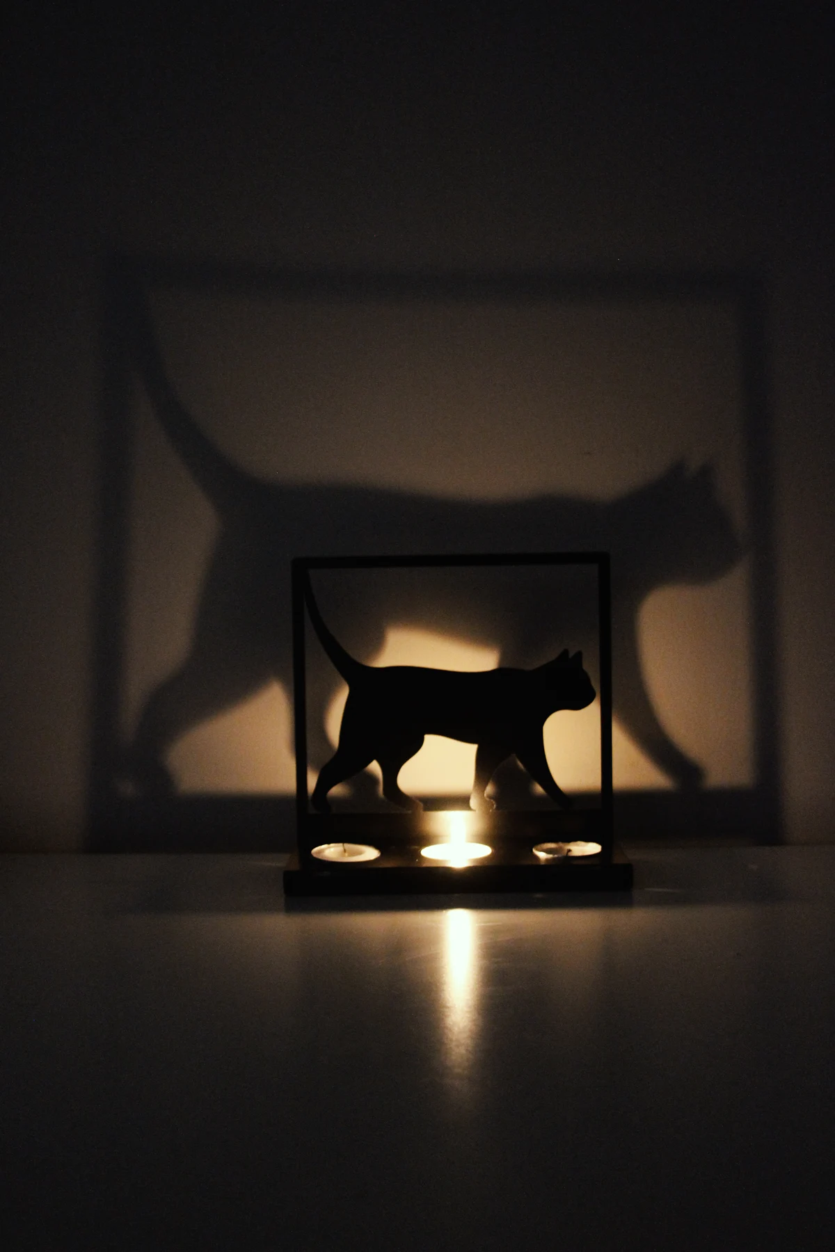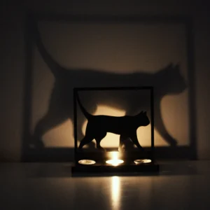 Kedi Deseni: Mumluk üzerindeki zarif kedi deseni, ürüne benzersiz bir karakter kazandırır. Desen, duvara yansıdığında şık bir kedi gölgesi oluşturarak ortamı daha da özel kılar.