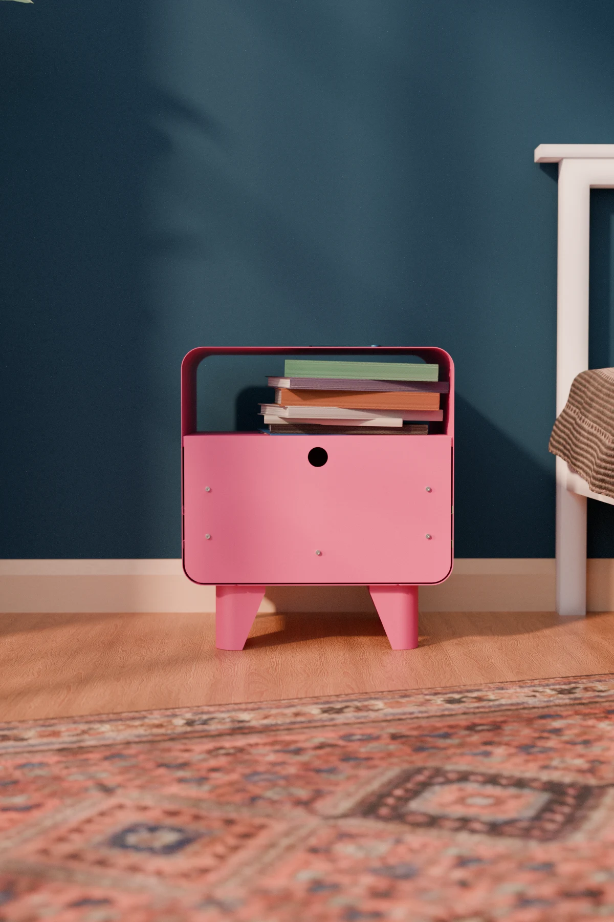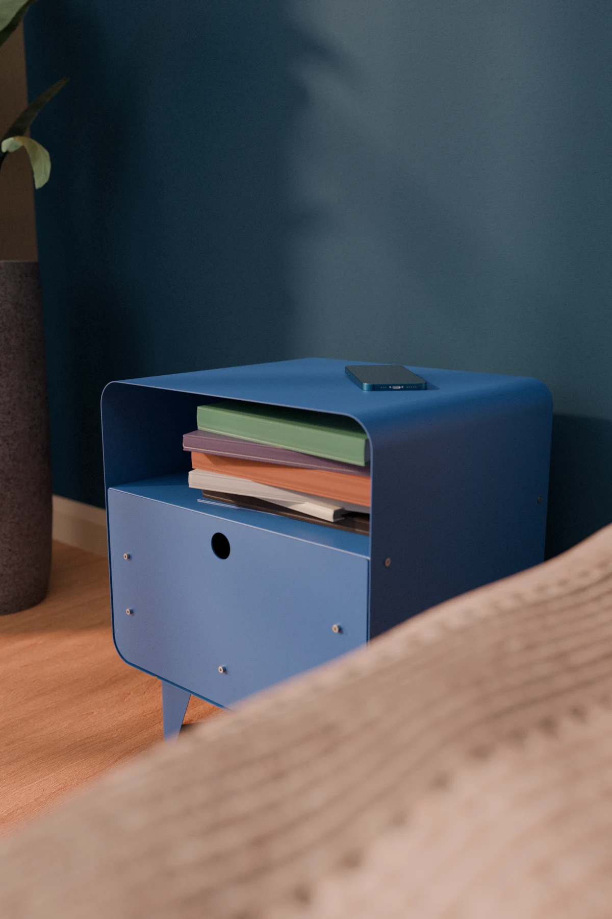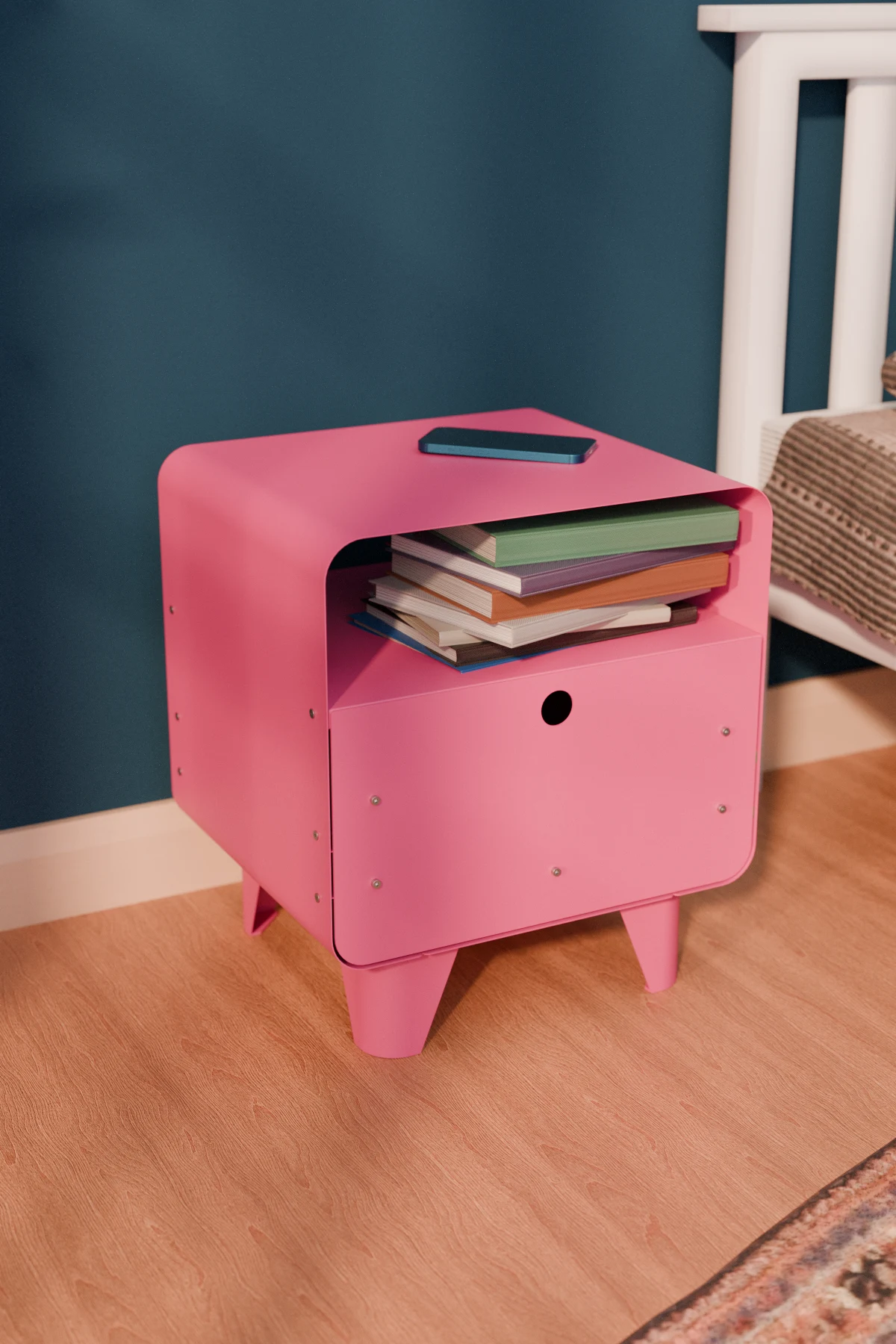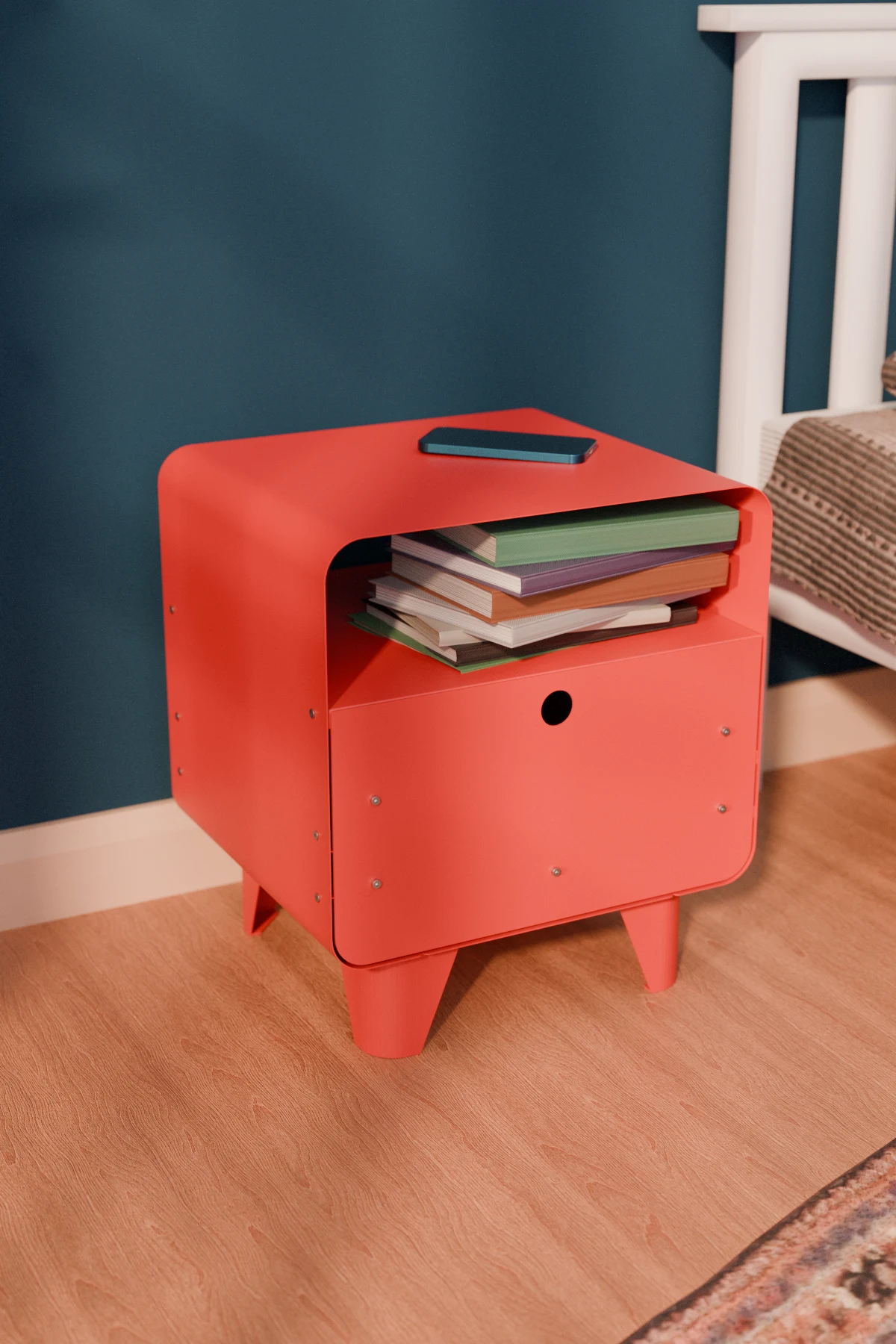 Edge Metal Komodin, modern çizgileri, yuvarlatılmış hatları ve canlı renk seçenekleriyle tasarlanan bu metal komodin; yatak odası, salon veya okuma köşeleri için hem dekoratif hem de işlevsel bir çözümdür. Minimal formu sayesinde küçük alanlarda rahatça kullanılırken, dayanıklı metal yapısı uzun yıllar sorunsuz kullanım sunar.