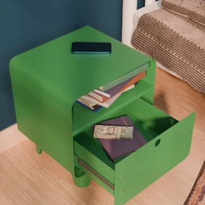 Üst yüzeyi gece lambası, telefon veya kahve fincanı için ideal bir alan sağlarken; açık raf bölümü kitap ve dergiler için pratik kullanım sunar. Alt çekmeceli bölme ise kişisel eşyalarınızı düzenli bir şekilde saklamanıza yardımcı olur.